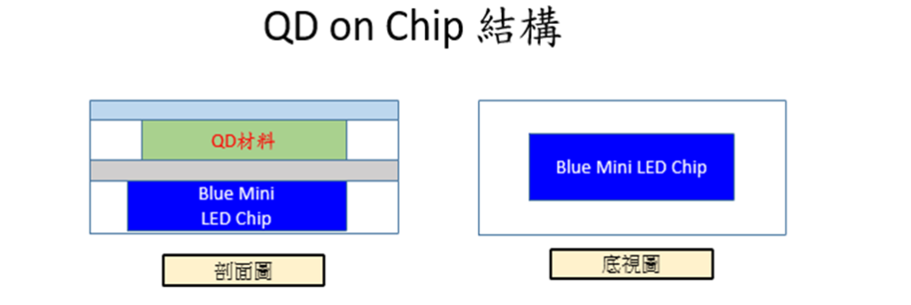 QD on Chip 適合用於Mini LED 直下式背光使用